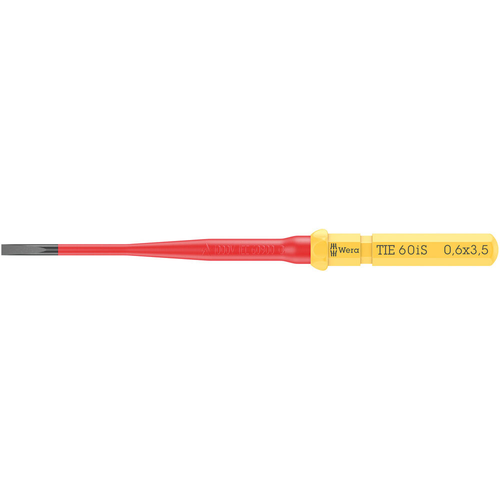 Aplicación: tornillos de ranura varilla: con un diámetro reducido de las varillas con aislamiento de protección integrado, así es posible acceder a elementos de uniones atornilladas y de muelles a profundidad, y realizar los trabajos necesarios; probadas en un 100 % según IEC 60900 Arrastre: hexágono de 9 mm con chaflán de inserción Realización: filo cónico, bruñido, extremo tipo Black Point, con sistema de búsqueda de herramientas Take it easy: marcas a color según el perfil e indicaciones del tamaño grabadas en láser; con sistema de hexágono antirrodamiento que evita que la herramienta se ruede durante el trabajo.