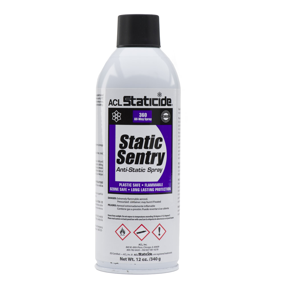 Use Staticide® Static Sentry for static electricity control on a variety of surfaces including laminate flooring, carpeting, work surfaces, plastics, and glass. It is safe to use in manufacturing facilities for static control on carrying trays, protective packaging, and smocks.